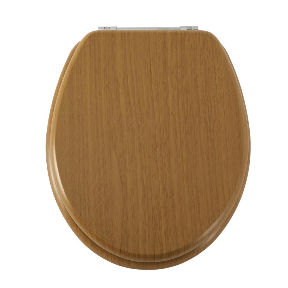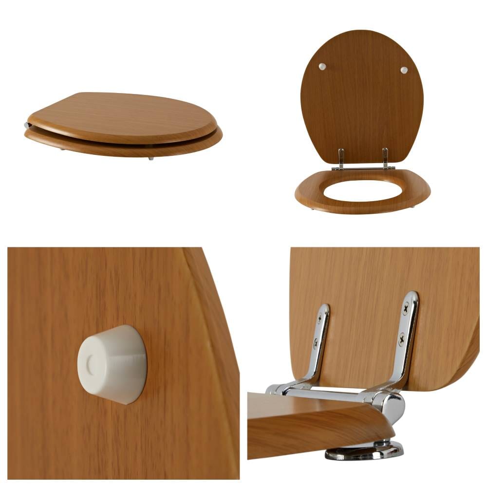Beneficiando di una struttura in legno ingegnerizzato resistente all'umidità con un'attraente finitura effetto Rovere caldo, il sedile del water è dotato di cerniere a barra cromate con fissaggio inferiore per resistere ai rigori dell'uso quotidiano e garantire che duri per molti anni a venire.