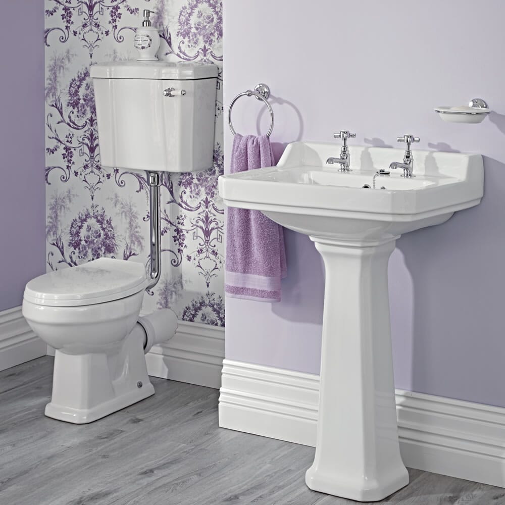 Questa collezione multiprodotto in stile classico contiene una vasca tradizionale centro stanza in acrilico con piedini cromati, rubinetteria, lavabo e sanitario in ceramica. Il set completo retro è ideale per creare un ambiente classico molto elegante. Il sanitario in ceramica comprende il vaso e cassetta con accessori.