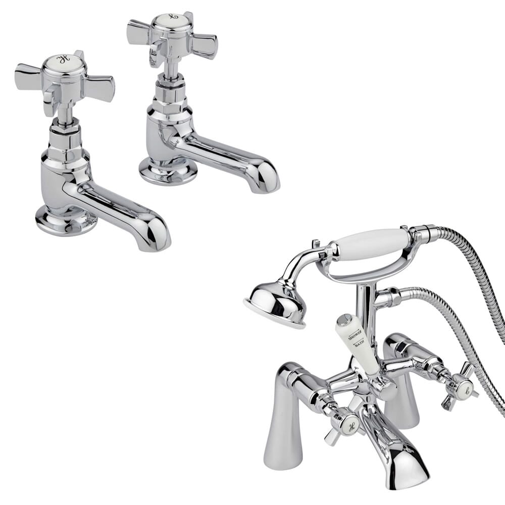 Set Bagno con Vasca, Rubinetteria, Lavabo a 2 Fori e Sanitario - Carlton
