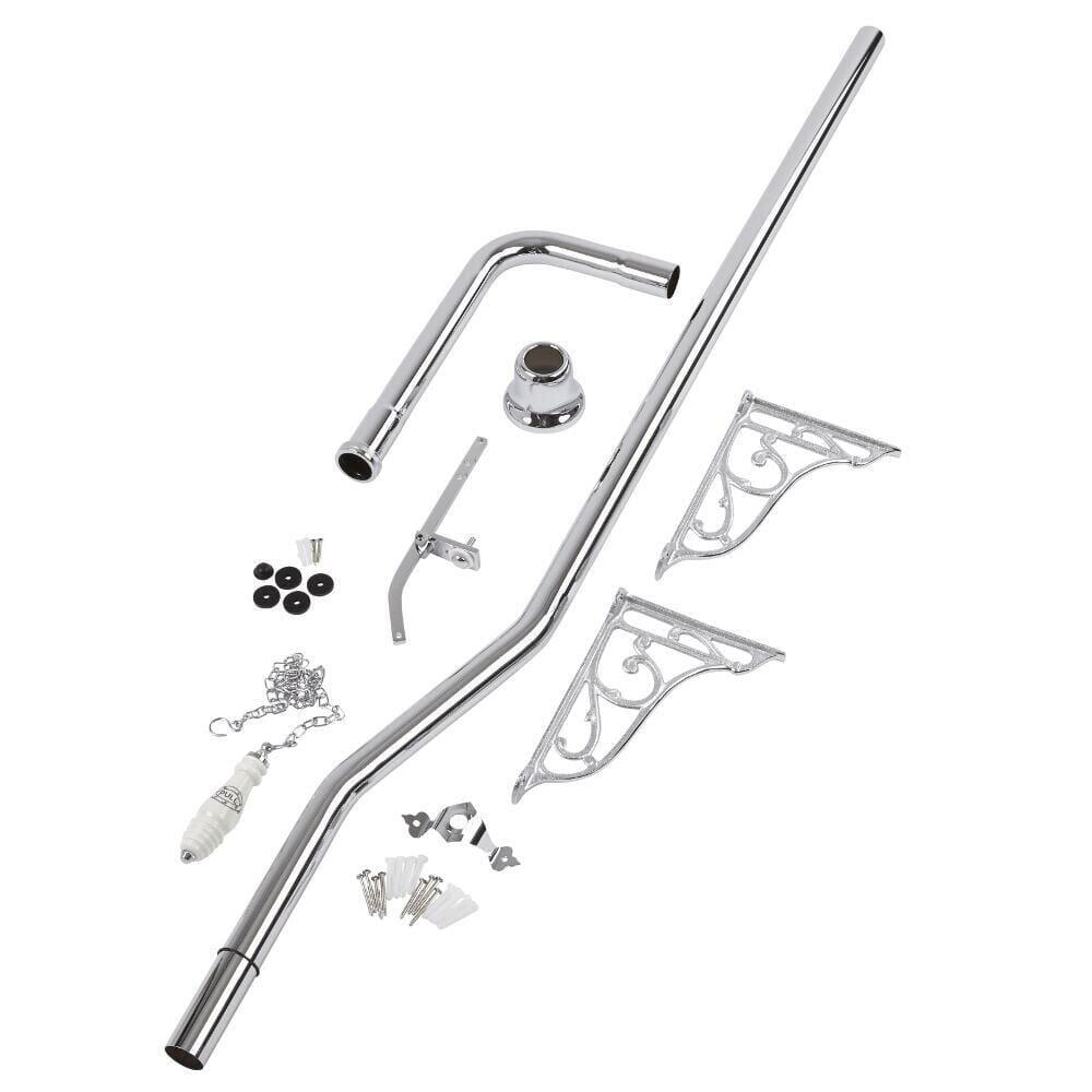 - Include staffe di montaggio cromate, catenella tradizionale lunga e leva WC in ceramica