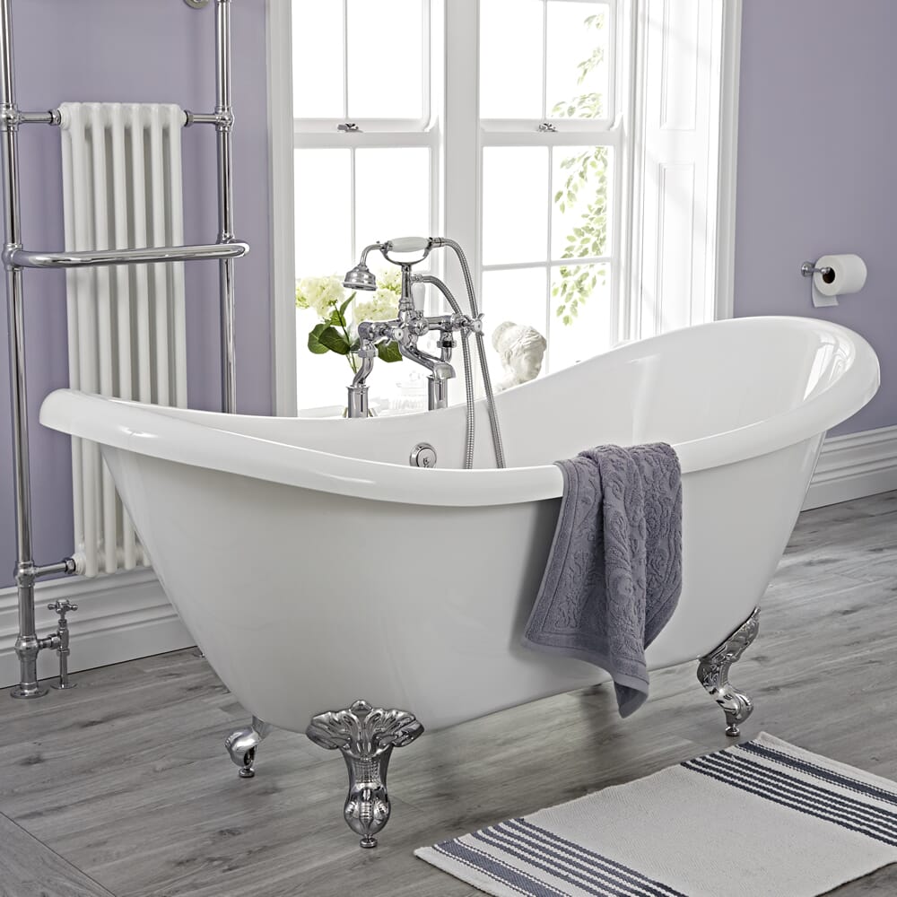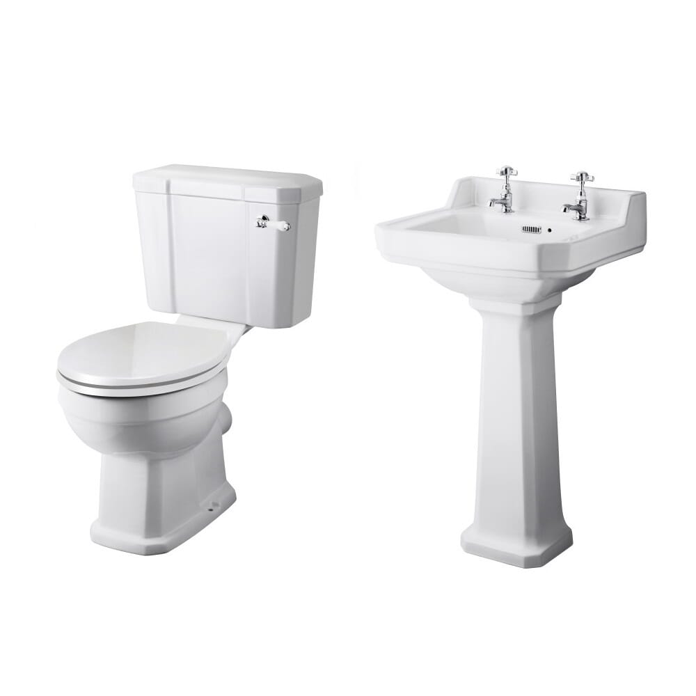 Questa collezione multi prodotto in stile classico contiene una vasca tradizionale centro stanza in acrilico con piedini cromati, lavabo e sanitario in ceramica. Il set completo retro è ideale per creare un ambiente classico molto elegante. Il sanitario in ceramica comprende il vaso e cassetta con accessori.