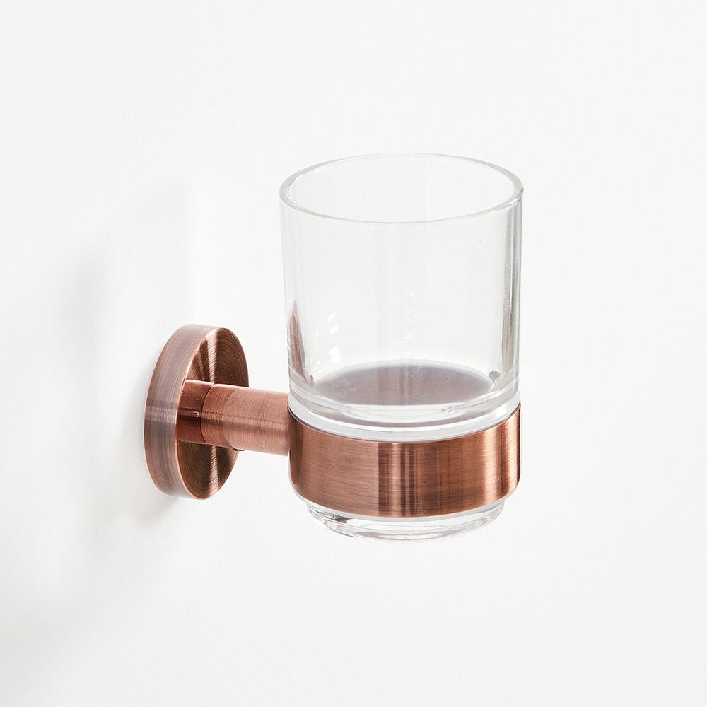 Con un design moderno e una finitura in rame, questi accessori da bagno in ottone eleveranno sicuramente il look con un tocco contemporaneo. il set include un portarotolo coordinato, un portasciugamani ad anello, un bicchiere e un portabicchiere in vetro e un porta accappatoio singolo.