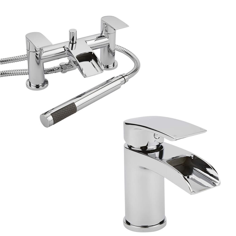 Set di Rubinetti con Miscelatore Lavabo a Cascata e Rubinetto Miscelatore Vasca con Kit Doccia - Razor