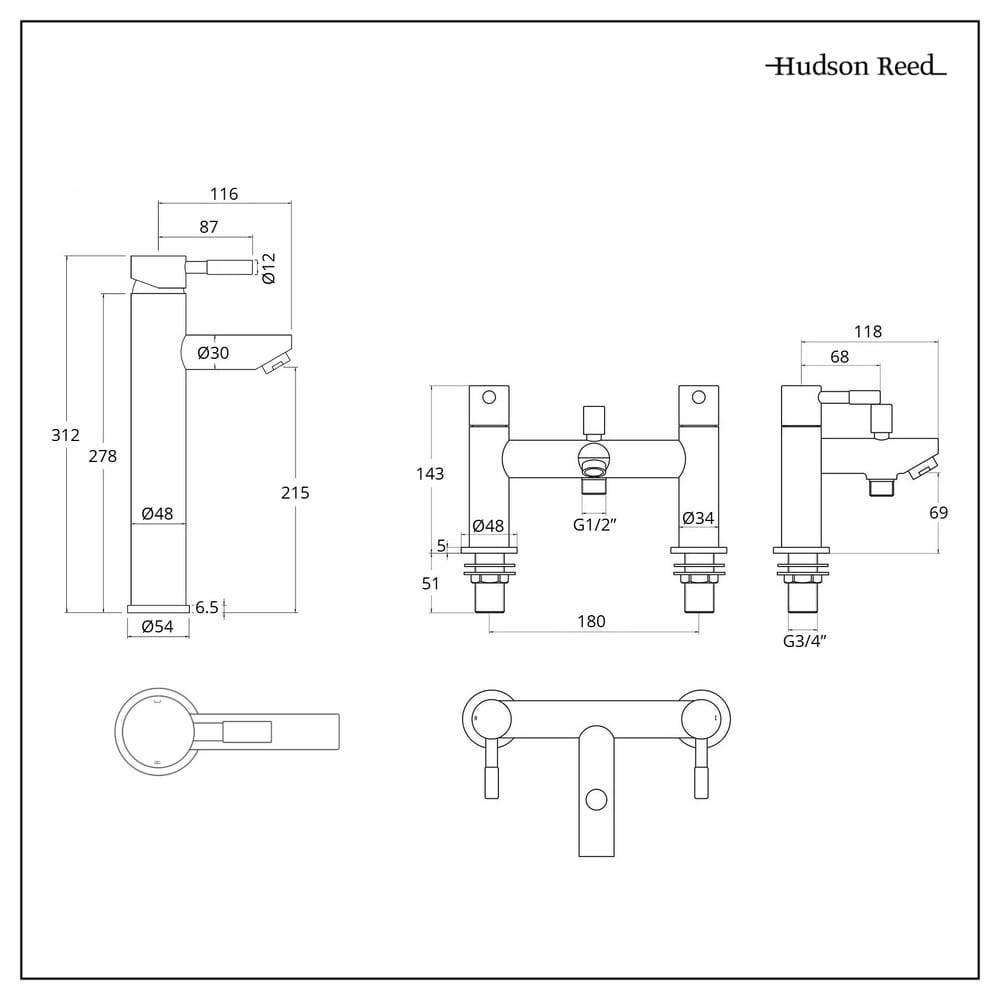 Crea un look moderno e coordinato con il set di miscelatori per lavabo e vasca da bagno Hudson Reed.