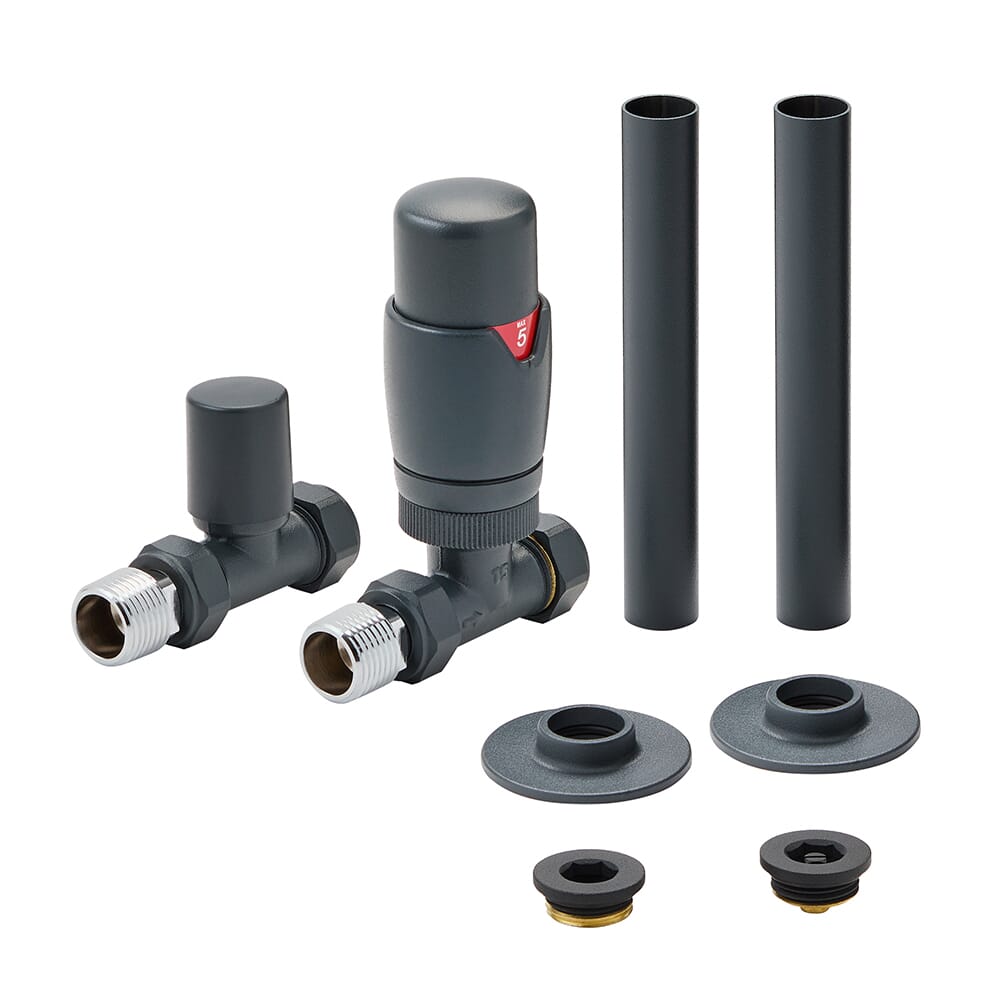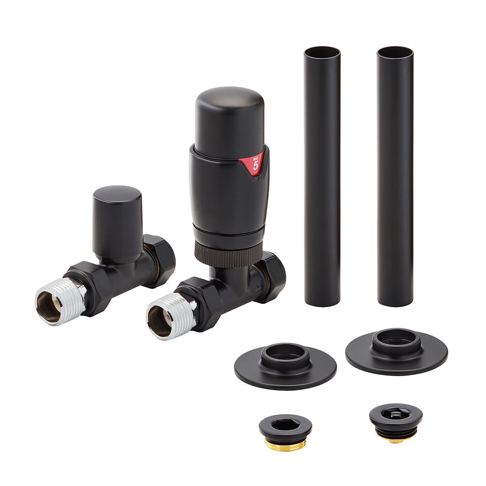 Set di Valvole Termostatiche Diritte e Copri Tubi per Radiatore - Scelta di Finiture
