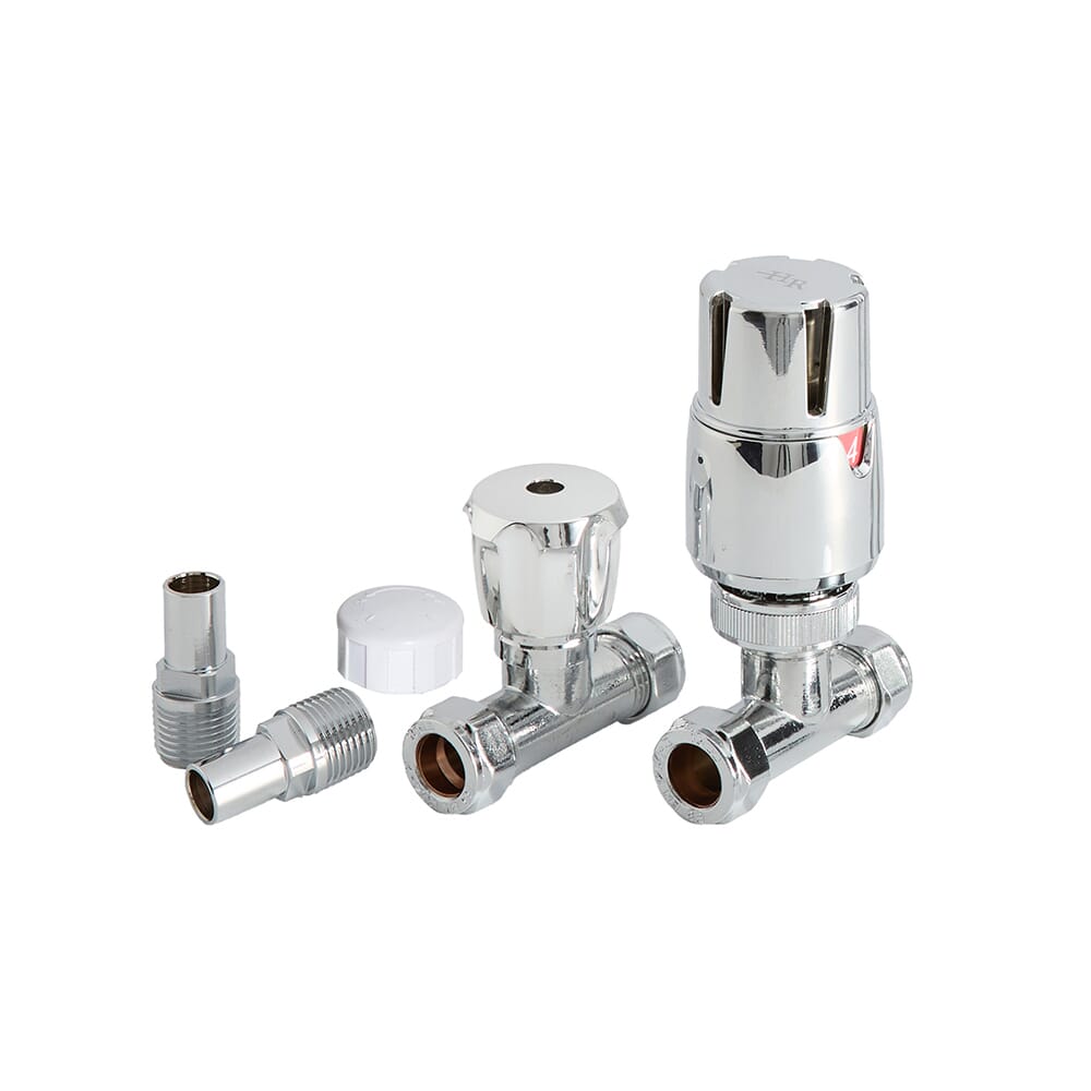 Set Moderno di Tubi e Valvole Termostatiche Diritte per Radiatore - Cromato