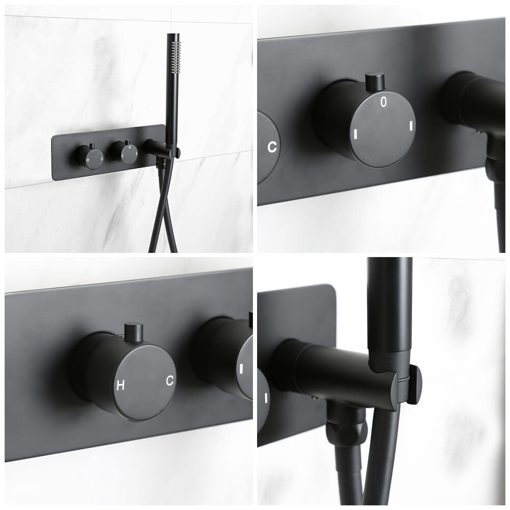 Sistema Doccia Termostatico Nero con Deviatore, Soffione Murale e Doccetta (2 Vie) - Nox