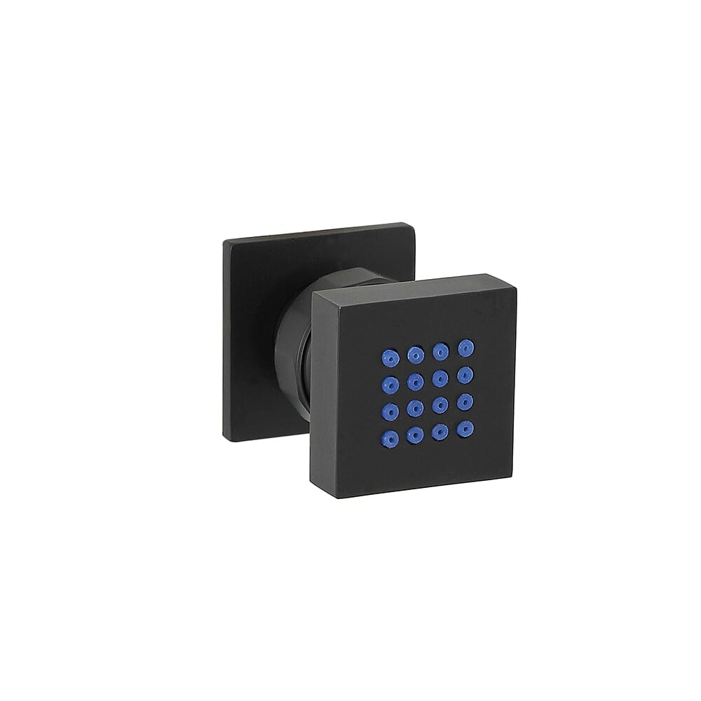Crea un look audace ma sofisticato con il sistema doccia termostatico Preto nero opaco, completo di miscelatore doccia, soffione quadrato a soffitto da 400 mm e quattro idrogetti.