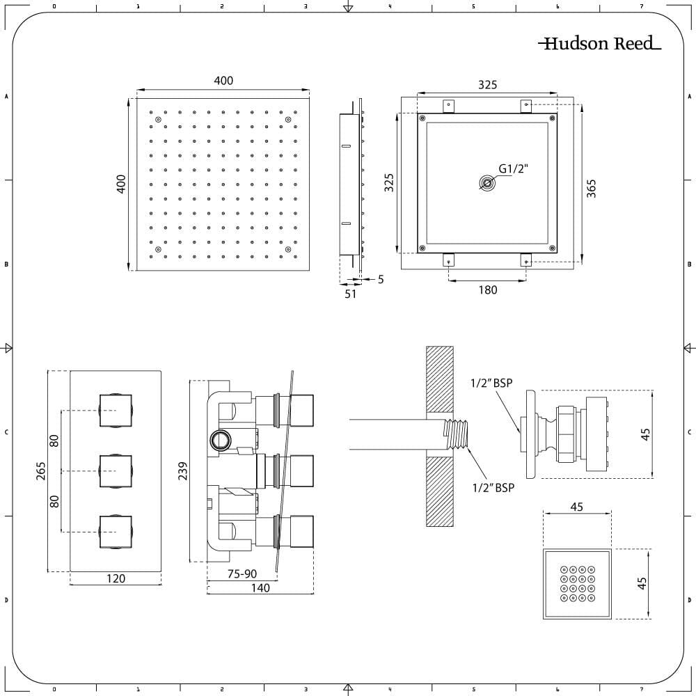 L'elegante soffione doccia da incasso offre un effetto pioggia calmante, mentre i quattro idrogetti forniscono un getto d'acqua tonificante.