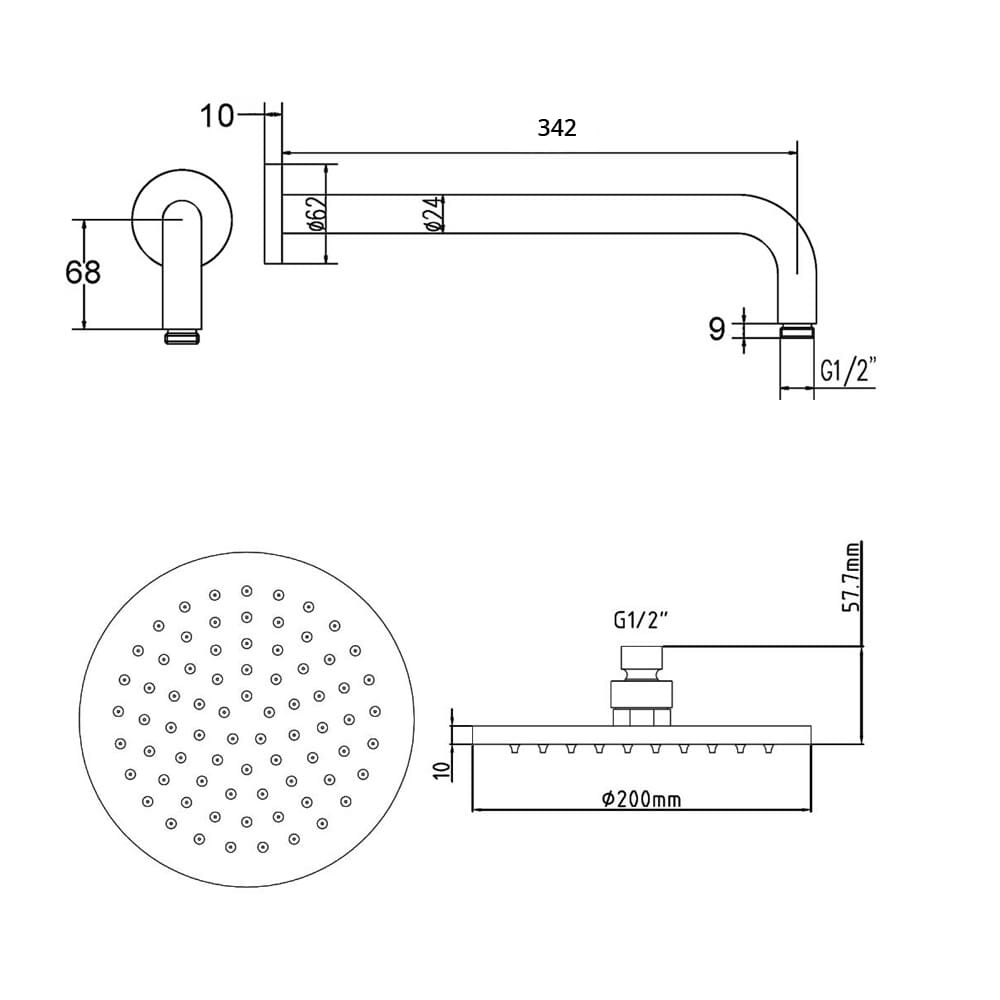 Soffione Fisso Circolare di 200mm in Acciaio Inossidabile e Braccio Doccia in Ottone Cromato