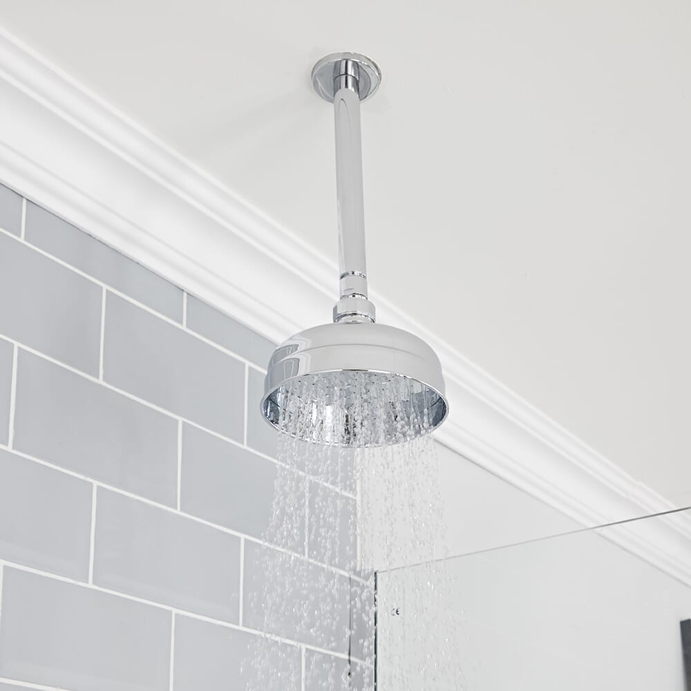 Il soffione da doccia in stile tradizionale da 150 mm completo di braccio a soffitto, creerà un fantastico ambiente con un tocco vintage nel tuo bagno.