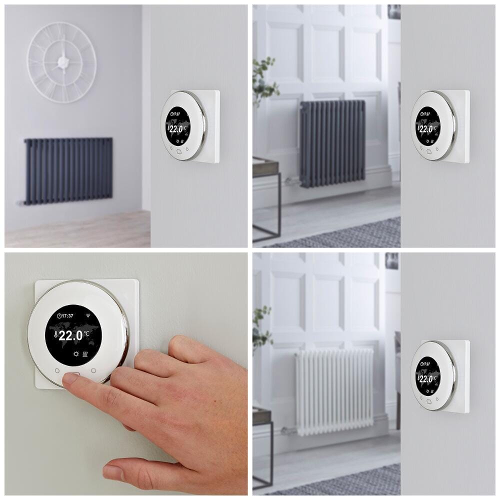 Il termostato intelligente WI-Fi per riscaldamento elettrico ti consente di controllare il sistema di riscaldamento elettrica tramite il tuo cellulare o tablet ed è compatibile con Google Home e Amazon Alexa. Offre una vasta scelta di impostazioni per aiutarti a controllare diversi radiatori elettrici. Imposta diversi programmi di riscaldamento e gestire diverse zone. Crea uno spazio accogliente e controlla il tuo riscaldamento elettrica in ogni momento e in qualsiasi luogo dal tuo cellulare o tablet.
