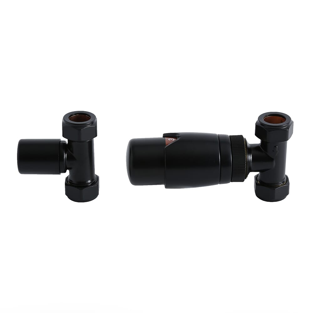 Valvola Termostatica Diritta con Detentore per Radiatori - Nero