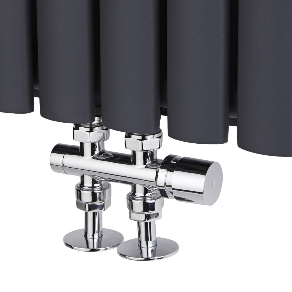 Valvole Diritte per Radiatori e Scaldasalviette con Attacco Centrale Complete di Testa Cromata e Selezione di Adattatori – Multiblock H