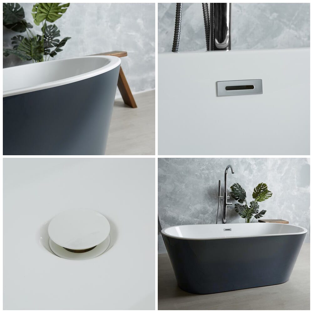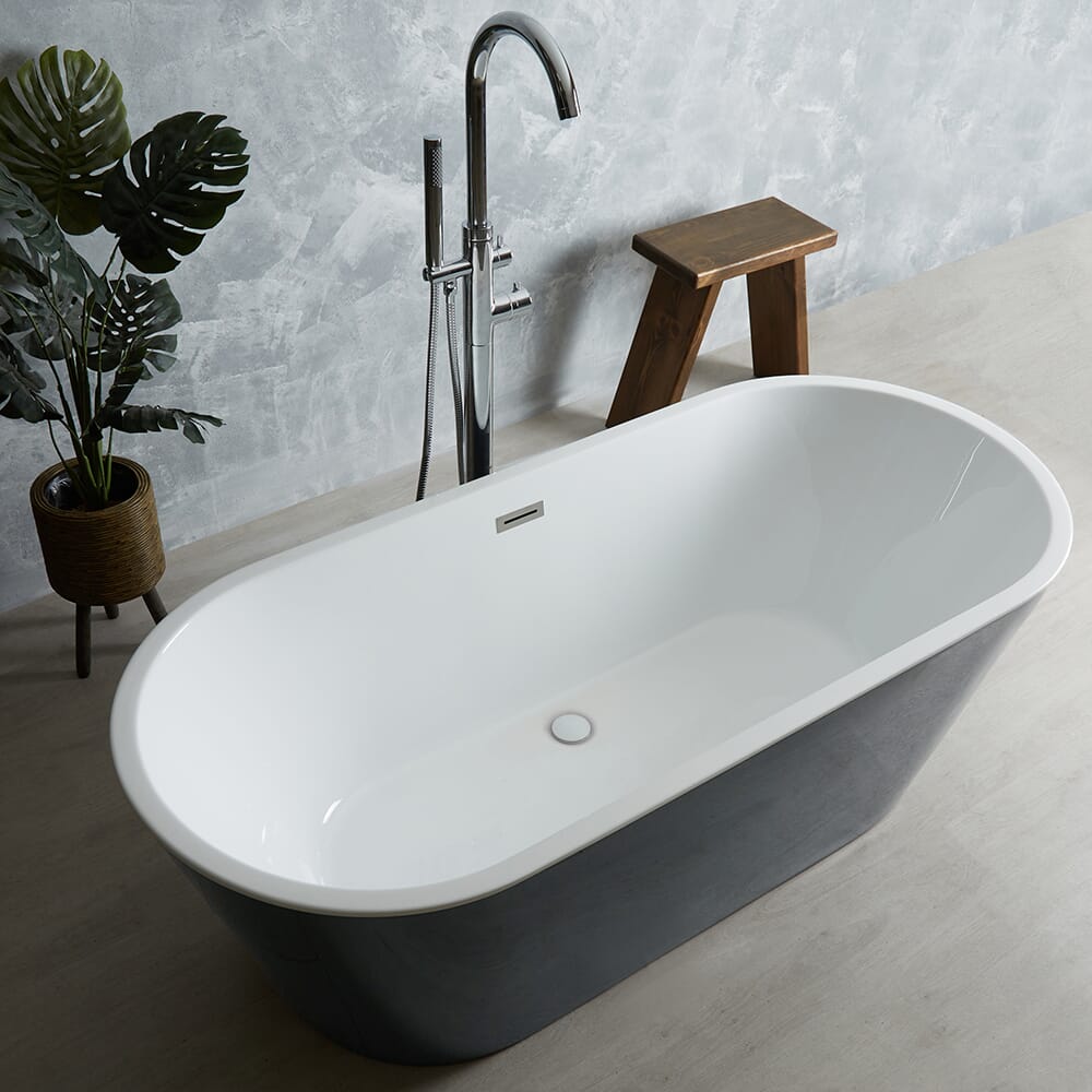Realizzata in acrilico doppio rinforzato, questa vasca è eccezionalmente rigida, robusta e resistente all’usura e alle macchie. L’esterno della vasca con effetto grigio pietra aggiunge un tocco di design elegante e moderno alla stanza da bagno. Il design ovale crea un punto focale nella stanza da bagno.