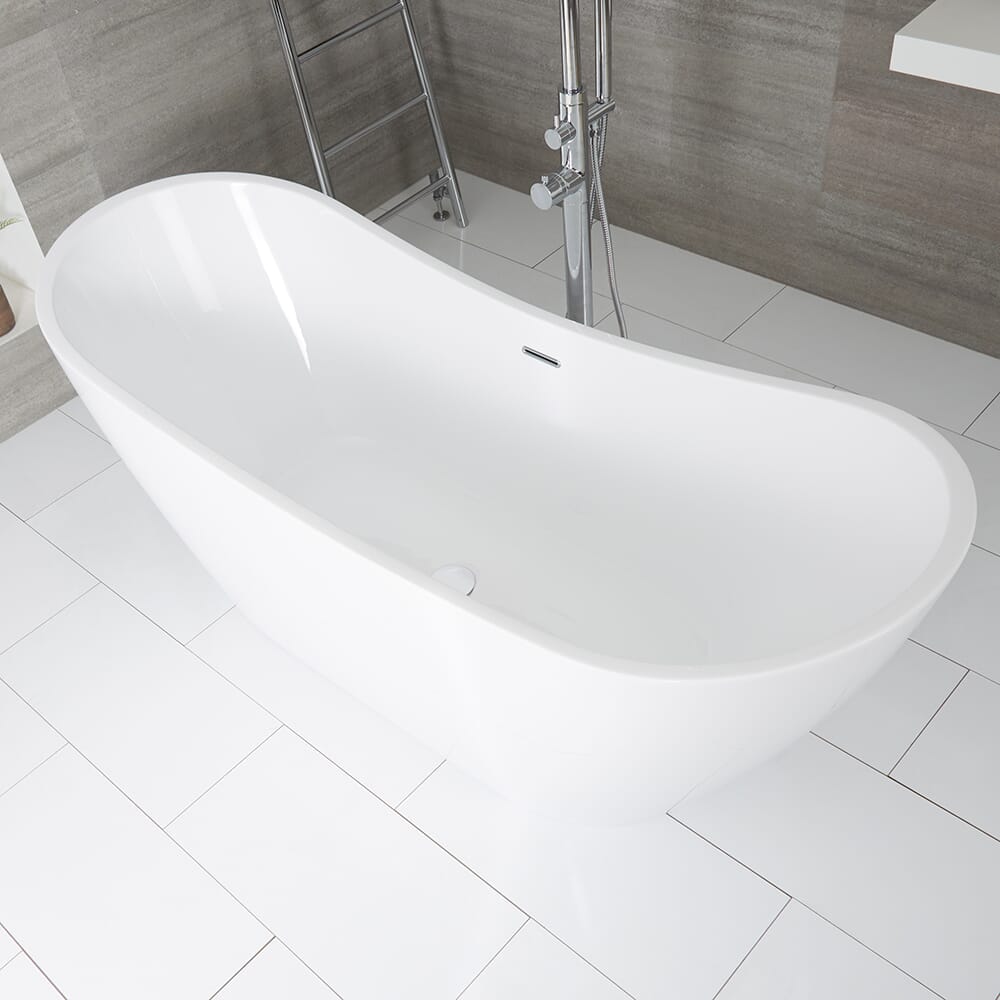 Vasca da Bagno Centro Stanza Ovale Moderna – Bianca – 1830mm x 710mm - Scelta di Finitura Troppopieno – Otterton