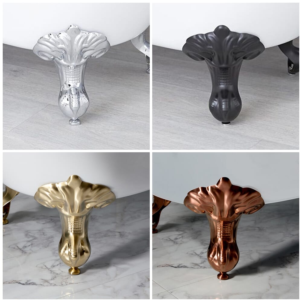 - Scelta finitura piedini vasca: cromato, nero, oro spazzolato, bronzo Lucidato ad olio, bianco